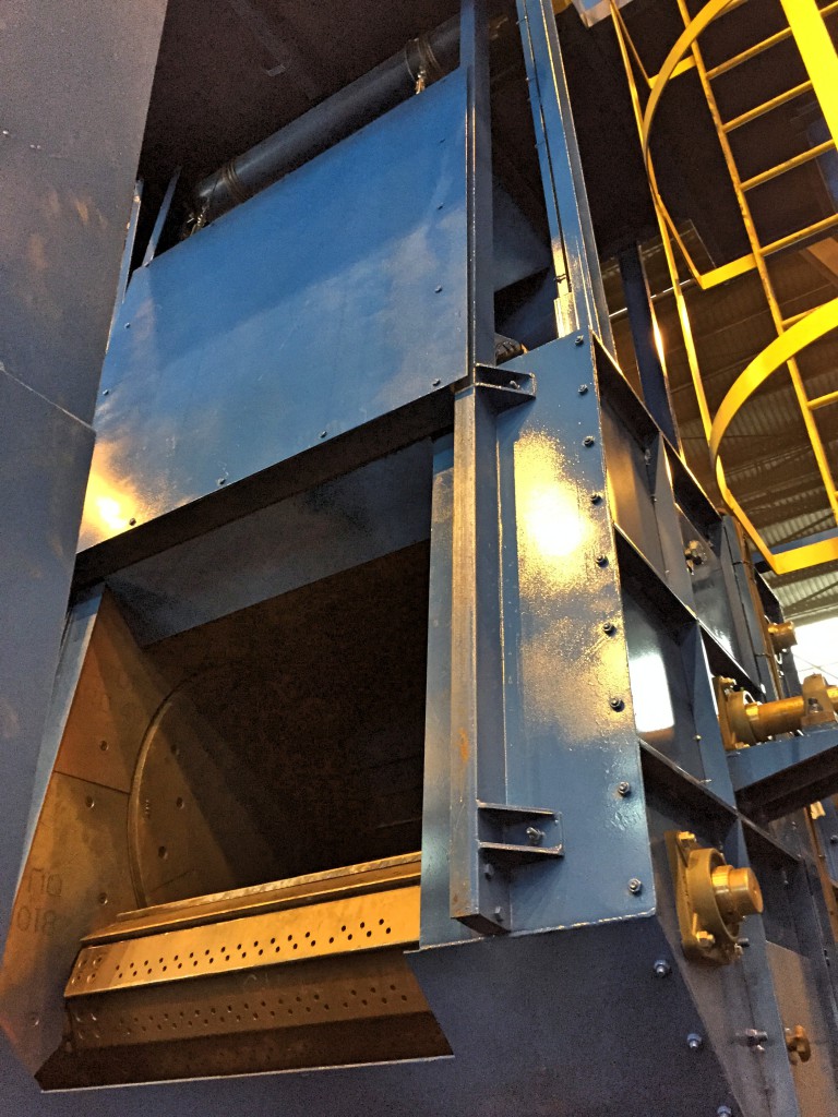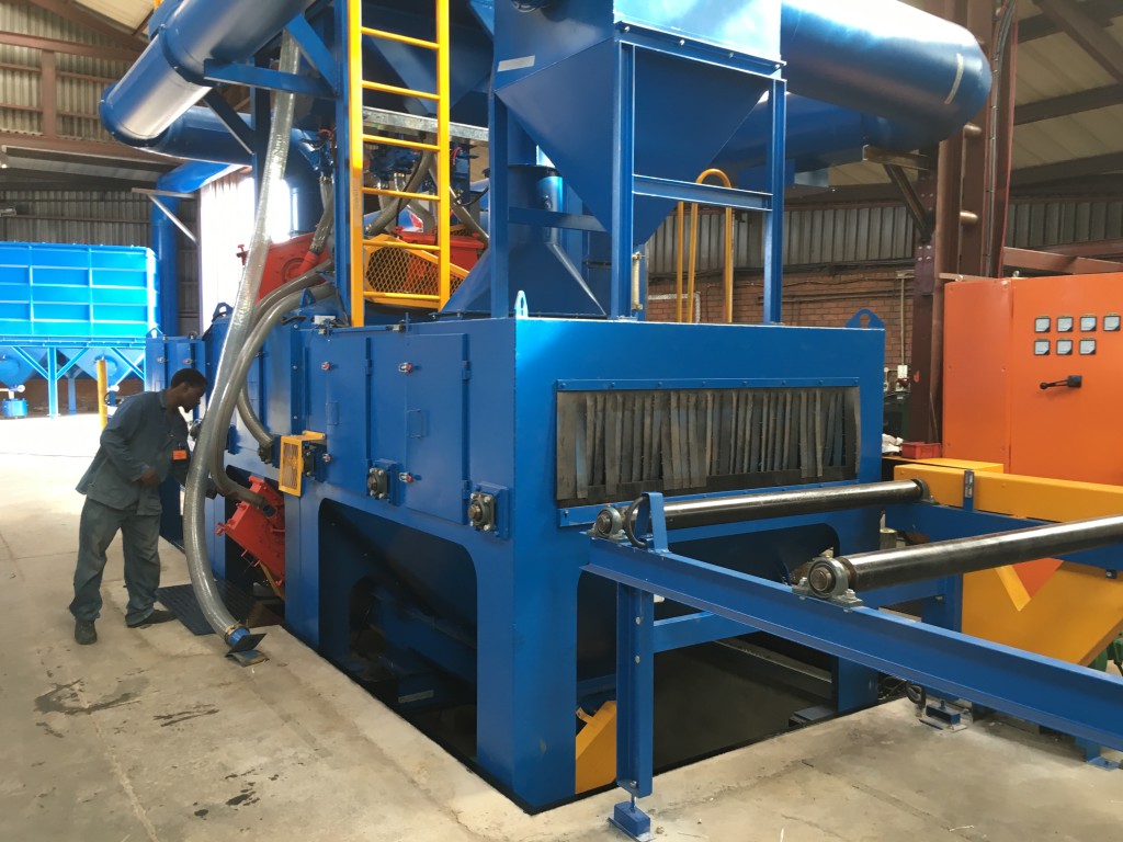 Tumbling machines are designed to clean components that are typically lighter than the parts placed in Hanger machines. Parts up to about 20kg can be clean in tumbling machines. The parts are placed on a moving belt and continually fall over on top of each other whilst a wheel throws shot on the parts.